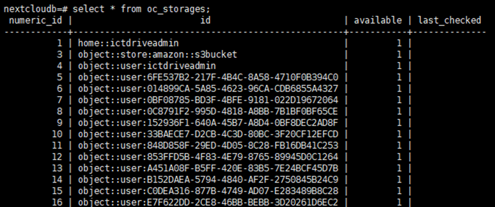 Все хранилища прописаны в oc_storages