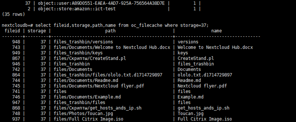 Соответственно, файл Nextcloud flyer.pdf ссылается на хранилище 1, то есть home::ictdriveadmin и будет искать файл в директории {{datadirectory}}/ictdriveadmin/path